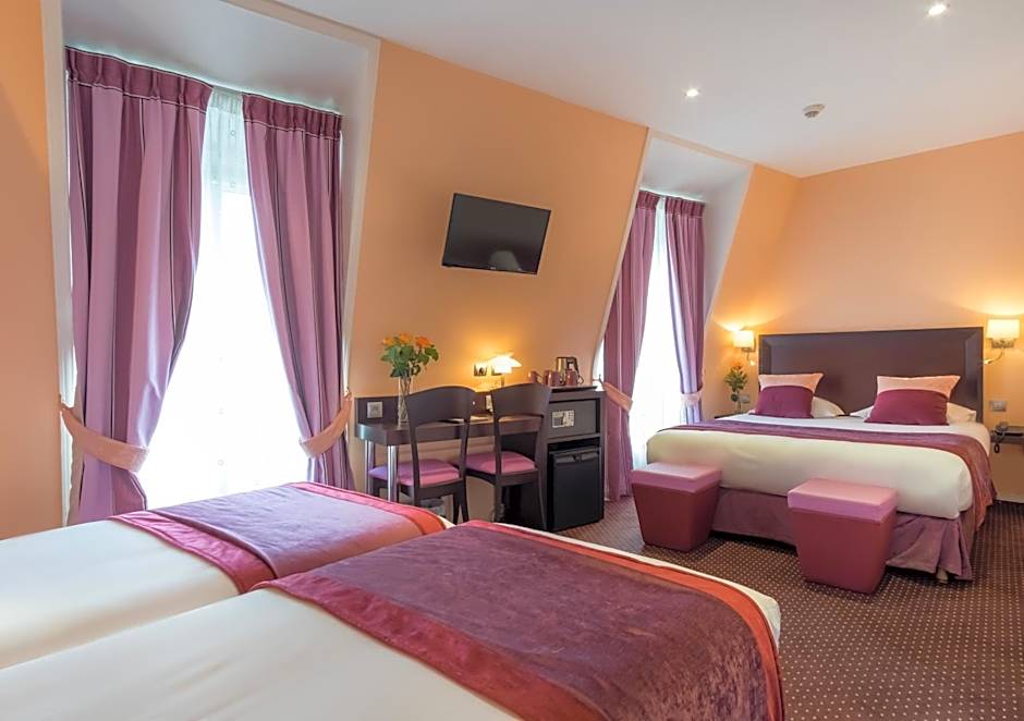 The quadruple room provides a safe deposit box, parquet floors, as well as a private bathroom boasting a shower and a hairdryer. The quadruple room offers air conditioning, a mini-bar, a tea and coffee maker, a wardrobe and a flat-screen TV with cable channels. The unit has 3 beds.